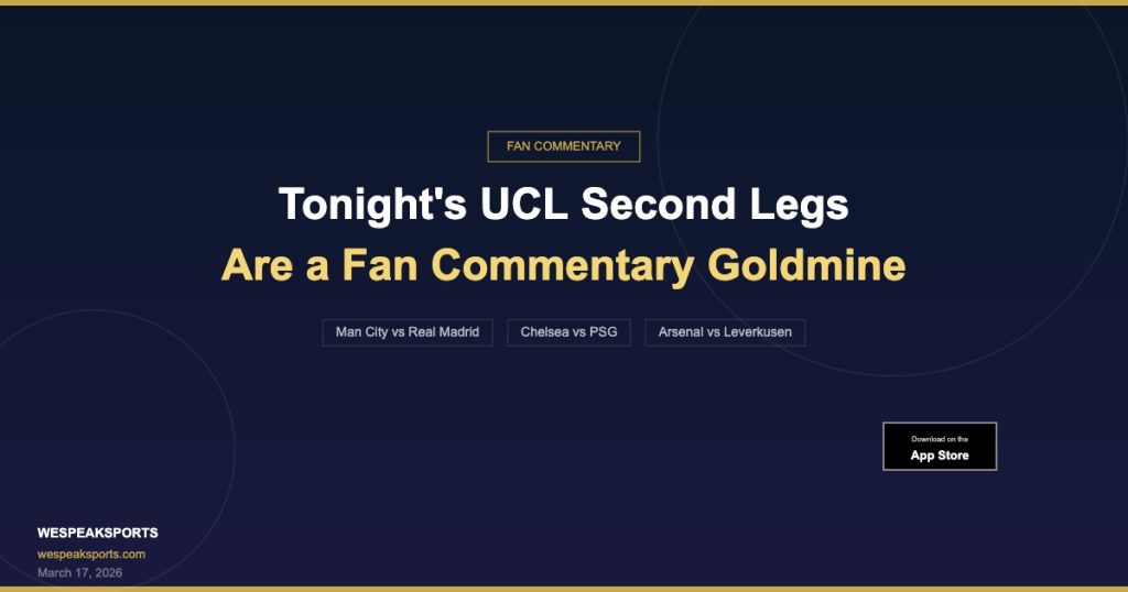 Real Madrid lead Man City 3-0. PSG crushed Chelsea 5-2. Tonight’s UCL second legs are set up for dramatic comebacks or ruthless confirmations. Either way, fan commentary will be electric.